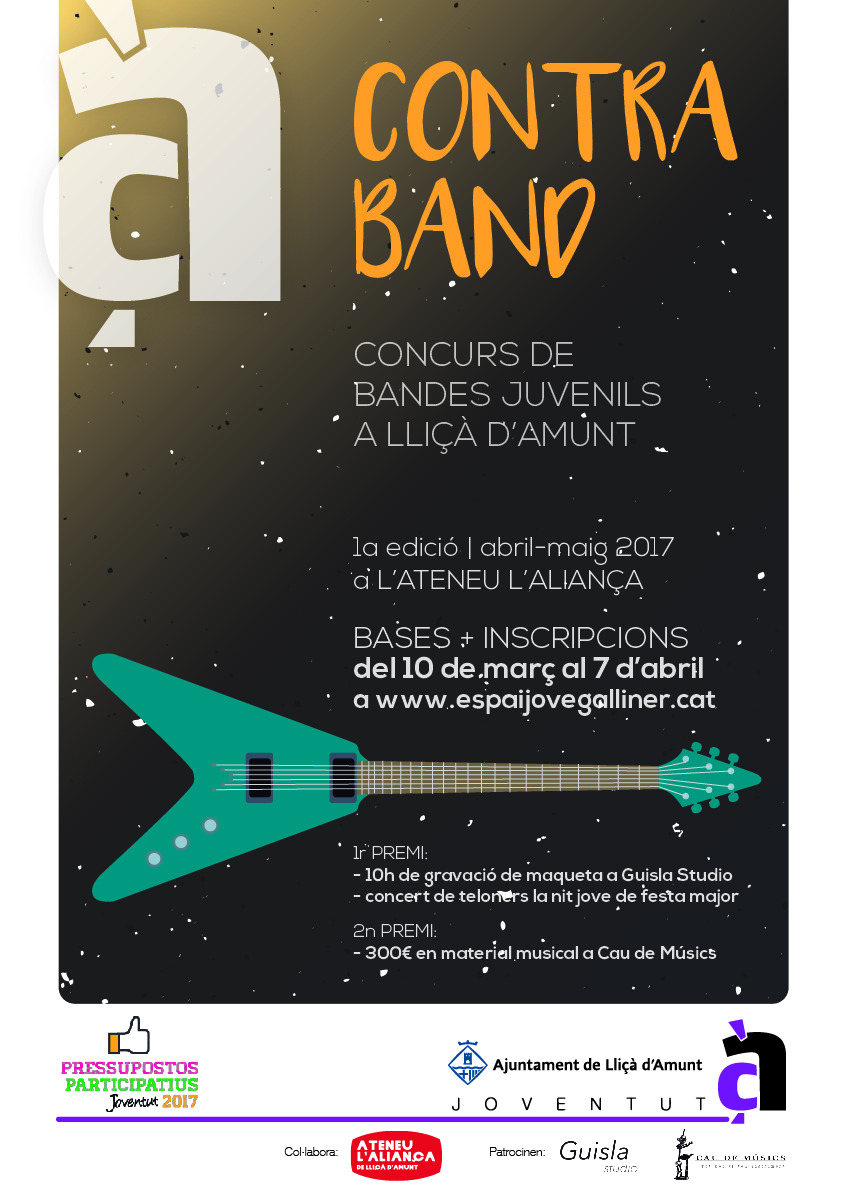 Cartell concurs Contraband i aplicacions per a facebook (capçaleres per a visionat web i per a visionat des de smartphone). Col·laboració gratuïta per a l’activitat organitzada per joves de Lliçà d’Amunt.