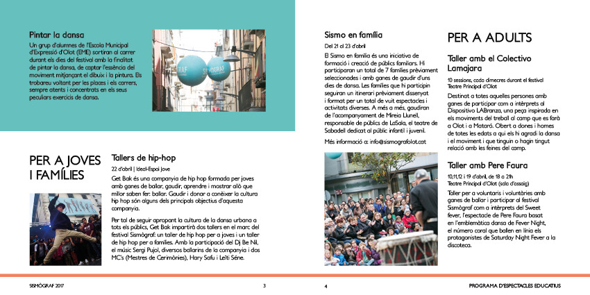 Fulletó de les activitats educatives del Sismògraf 2017. Treball acadèmic del grau de Disseny i creació digitals de la UOC.